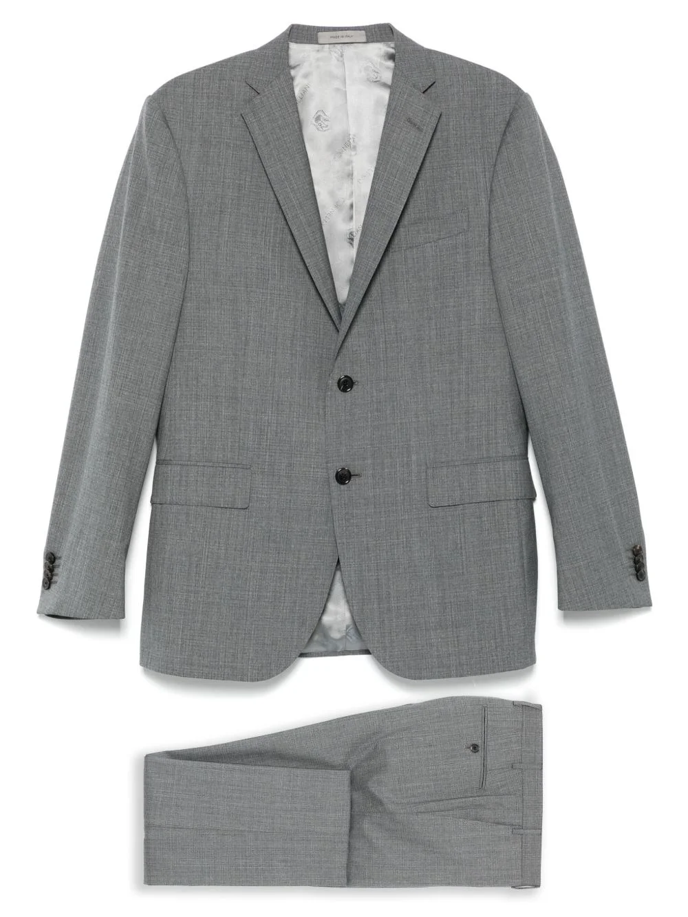 Academy suit Highlights - Medium grey - Front button fastening - Concealed fly and button fastening - Chest welt pocket - Two rear button-fastening jetted pockets Made in Italy Composition Lining: Cupro 100%, Viscose 100%, Cotton 50%, Modal 50% Outer: Virgin Wool 100% SIZE & FIT Model measurements Height 6 ft 0 in(1.84 m) Bust/Chest 37.79 in(96 cm) Hips 37 in(94 cm) Waist 31.49 in(80 cm) FittingInformation Tailored for a slim fit, offering a comfortable fit that sits just away from the body The vented hem offers movement at the rear Made from a lightweight non-stretch fabric