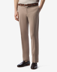 The beige wool trousers are the best choice for those who long for elegance and comfort. The 120’ gauge indicates the quality of the trousers’ wool: a thin yarn that ensures a soft feel and great resistance. Added elastane for ease of movement in every occasion. DETAILS & MATERIALS - 98% wool, 2% elastane - unlined tropical wool trousers - flat front - contemporary fit - mid rise - slant pockets - welt back pockets - belt loops - flap with curtained waistband - bottom width 19 cm FIT & WASHING - This garment has a contemporary fit. The model is wearing a size 50 (IT). Model measurements: height 187cm, chest 98cm, waist 82cm, hips 98cm. Dry clean with perchloroethylene, do not bleach, maximum iron temperature 110°, do not tumble dry
