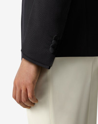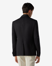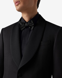 With its Corneliani Code formal menswear collection, Corneliani chooses the best in sartorial elegance to celebrate your special days and make them unforgettable. The black 3D chevron wool tuxedo jacket has a classic fit and side vents at the back for ease of movement. The lined, single-breasted two-button jacket features satin details. DETAILS AND MATERIALS - 100% virgin wool - lined 2-button tuxedo jacket - drop 8 - slim fit - tonal satin shawl lapels - breast pocket - double-welted pockets with tonal satin - side vents on the back - Code lining - satin-covered buttons - back length 74 cm - Made in Italy FIT & WASHING - The model is wearing a size 50 (IT). Model measurements: height 187cm, chest 98cm, waist 82cm, hips 98cm. Dry clean with perchloroethylene, do not bleach, iron at 110° maximum, do not use dryer