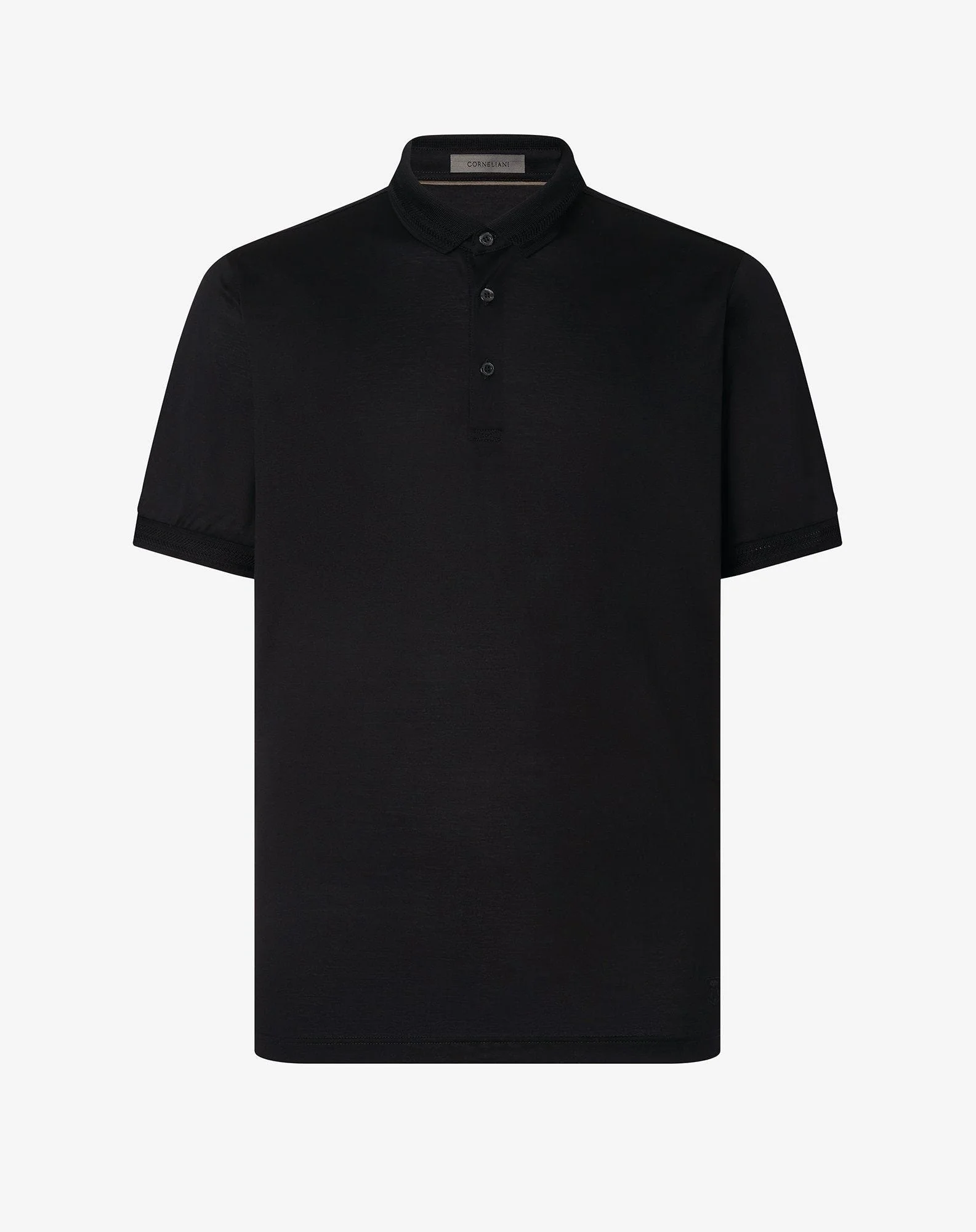 This black short-sleeved polo shirt combines a minimalist design with quality lisle thread from 100% mercerised Mako cotton, a fine fibre that yields a shinier finish but is also durable and soft to the touch. The fabric is OEKO-TEX- certified, guaranteeing sustainability and traceability in production. The buttons add a classic detail, for a versatile and comfortable garment DETAILS AND MATERIALS - 100% cotton - short-sleeved button-up polo shirt made from mercerised Mako lisle cotton - Made in Italy FIT & WASHING - Dry clean with perchloroethylene, do not bleach, do not tumble dry, maximum iron temperature 110°