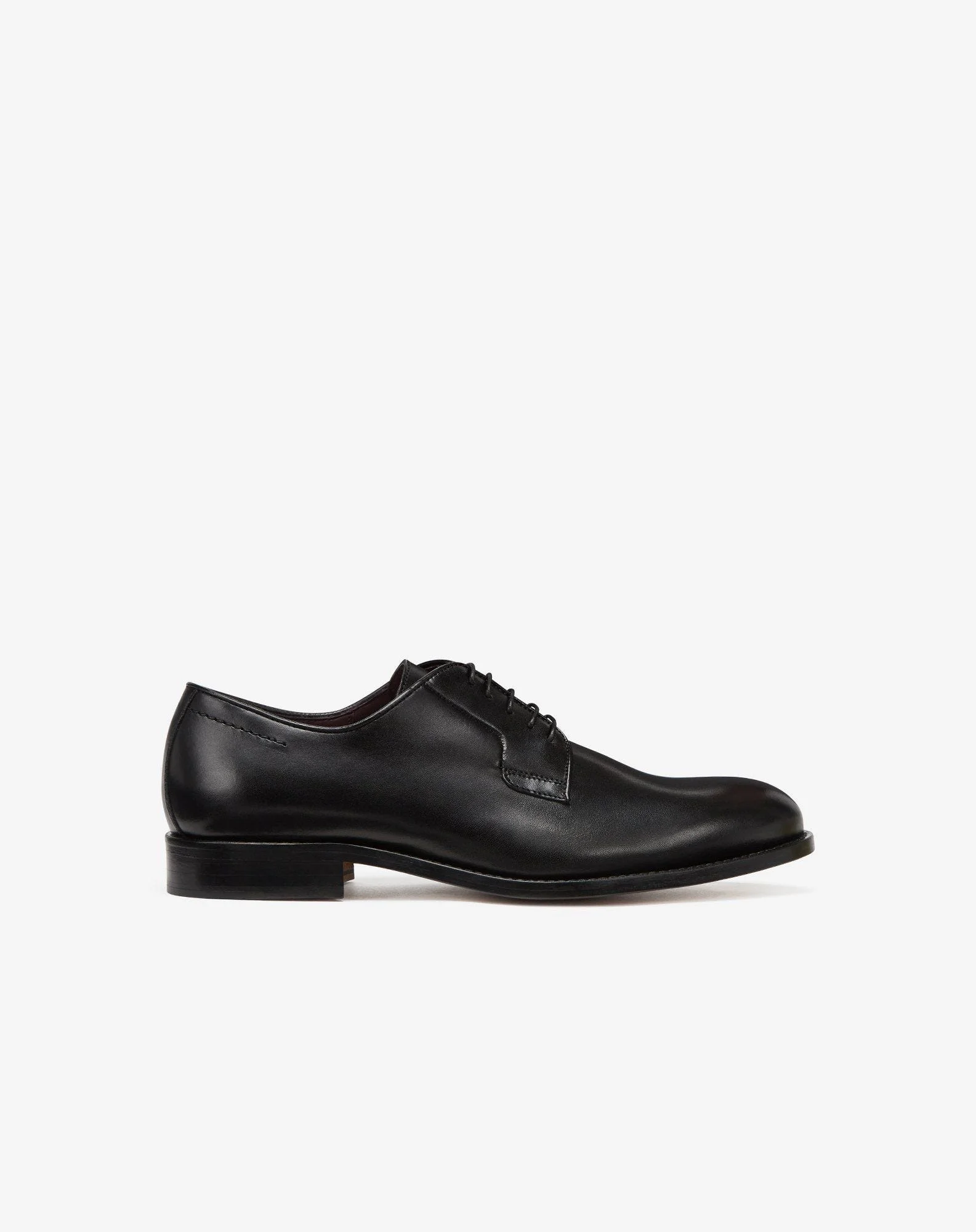 This calfskin derby shoe has a classic and elegant design, also due to its particular Blake structure, typical of the Made in Italy crafting tradition. The result of this craftsmanship, usually reserved for 'Gentleman's shoes', is an essential and refined look, the perfect match for our tailored suits. . DETAILS AND MATERIALS - 100% calfskin - Blake costruction - Made in Italy - leather sole FIT & WASHING - Regular fit Apply a small amount of polish and spread it equally on the surface using a soft cloth, to bring out the leather's full shine. Leave to dry for a few minutes, then polish carefully with a clean, soft cloth. Avoid contact with abrasive products, including brushes with hard bristles, and substances containing alcohol (perfumes, solvents, etc.). In case of contact with water, leave the footwear to dry out completely before cleaning.