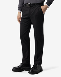 Made from a refined stretch cashmere and cotton gabardine, these black trousers elegantly interpret contemporary tailoring. The flat front design, combined with a regular fit, enhances the silhouette with balance and comfort. The tailored details reveal the craftsmanship: front closure with waistband and zip, belt loops and V-shaped back vent, coin pocket. Lined and finished with a 19 cm leg bottom, they are a versatile and sophisticated garment, perfect for enhancing the men's wardrobe with a discreet but distinctive style. DETAILS AND MATERIALS - 95% cotton, 3% cashmere, 2% elastane - stretch cashmere and cotton gabardine flat front trousers - drop 7 - regular fit - lined - front zip and waistband closure - belt loops and V-shaped vent on rear - watch pocket - slant side pockets - welted back pockets with zip - bottom width 19 cm FIT & WASHING - Dry clean with perchloroethylene, do not bleach, do not tumble dry, maximum iron temperature 110°
