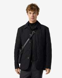 Dark melange grey cashmere joggers, a perfect blend of luxury and contemporary comfort. Crafted from soft cashmere laced with elastane to optimize freedom of movement, these joggers feature a regular fit and a balanced drop 7. The design is enhanced with technical details like the sewn ribbing in front, the drawstring at the waist and the elasticated cuffs for snug, personalized fit. The closure combines a 4-hole button with a zipped flap, while the slanted side pockets and button-up welt pockets on the back add practicality to the sophisticated style. Ideal for those seeking a smart and versatile garment. This item is part of the Cashmere Stretch Project, a selection of garments featuring a performance yarn that blends the warmth and softness of the fine fibre with the comfort of a little added elastomer. DETAILS AND MATERIALS - 80% polyester, 20% viscose - quilted caban coat with wadding padding - shirt collar - detachable nylon vest - concealed 4-hole button closure, except the first one - two large welt pockets in front - concealed snap button closure on cuffs - vertical breast pocket with zip - nylon lining - drawstring with adjusters on the waistband - two zipped pockets and two appliqued pockets - length 76 cm FIT & WASHING - Dry clean with perchloroethylene, do not bleach, do not tumble dry, maximum iron temperature 110°
