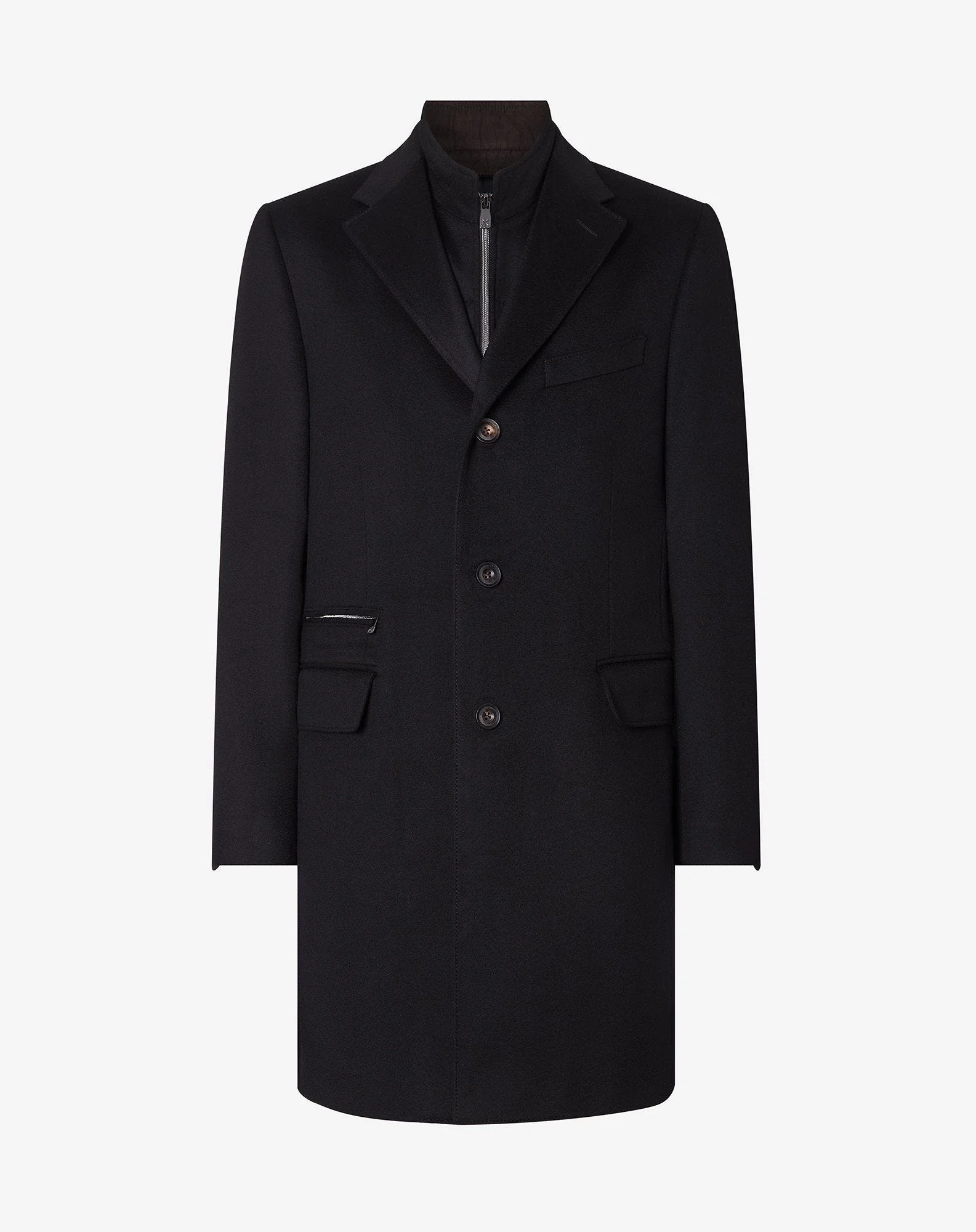 The brand’s iconic garment, the men's coat with a detachable inner vest, comes in a single-breasted wool beaver version. The soft yet durable fabric complements the coat’s casual design and is enhanced by functional details that enrich the garment without altering its essence. DETAILS AND MATERIALS - 100% virgin wool - single-breasted lined coat - notch lapels - outbreast pocket - flap pocket - flap ticket pocket - detachable same-fabric chest piece with zip closure - removable chin strap - three inside pockets - back length 95 cm FIT & WASHING - The model is wearing a size 50 (IT). Model measurements: height 188cm, chest 98cm, waist 81cm, hips 97cm. Dry clean carefully with perchloroethylene, do not bleach, maximum iron temperature 110°, do not tumble dry