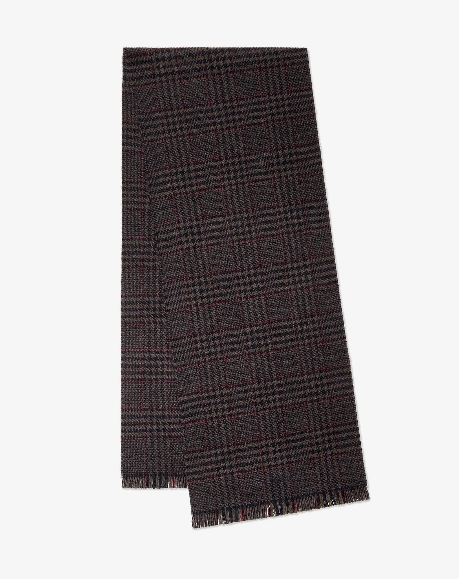 A contemporary revisitation of classic tartan accessories, this jacquard scarf is made from pure virgin wool with a sophisticated diagonal weave. The blue and brown pattern provides a balanced touch of colour and depth, while the embroidered logo and fringes add a distinctive touch. This is an accessory designed for the man who longs for an authentic style where tradition and modernity blend in harmony. Fully crafted in Italy, it combines artisanal know-how with natural comfort. DETAILS AND MATERIALS - 100% virgin wool - jacquard scarf with slanted weave and fringes - embroidered logo - size: 35x180 cm - Made in Italy FIT & WASHING - Dry clean with perchloroethylene, do not bleach, do not tumble dry, maximum iron temperature 110°