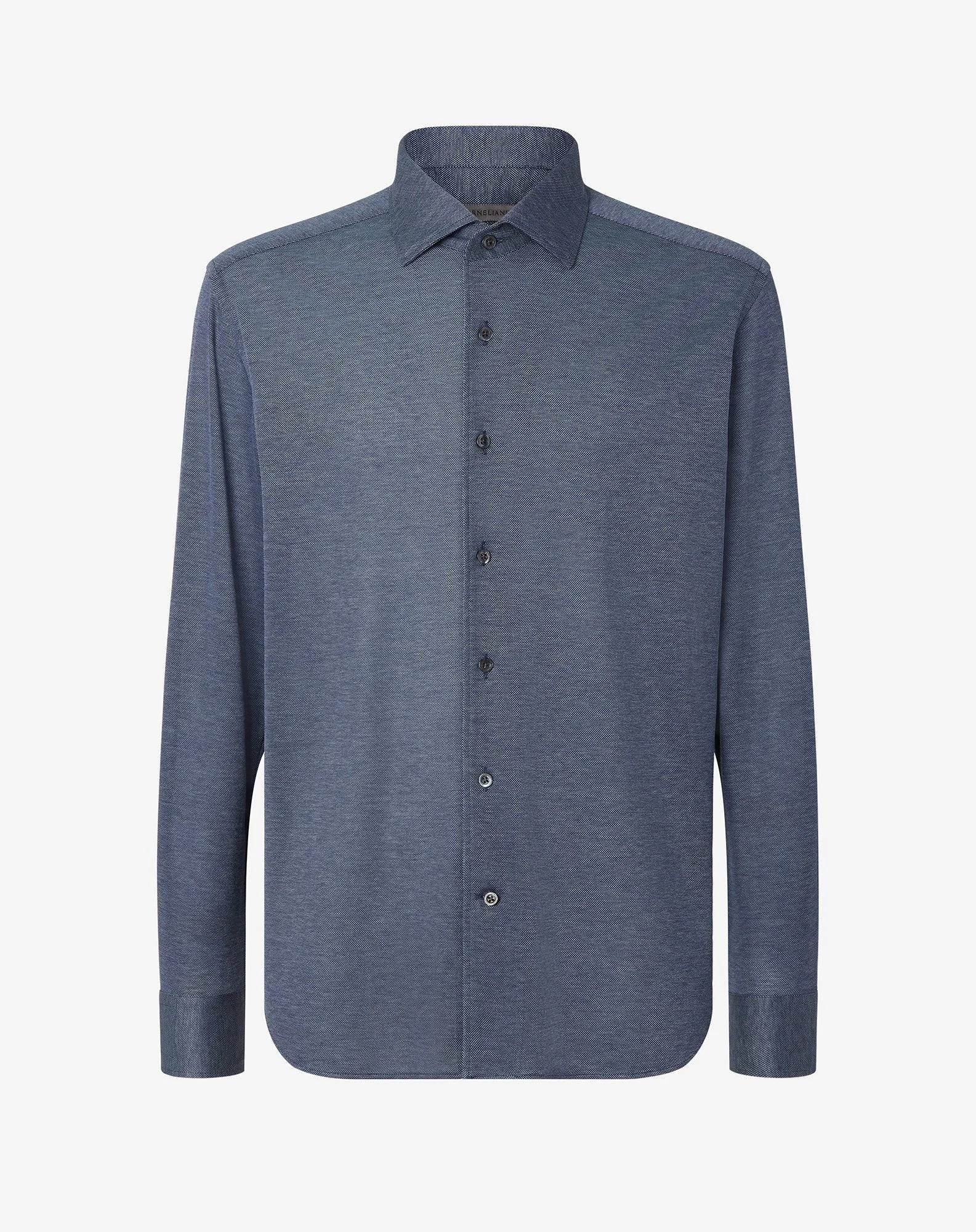 Made from 100% pure cotton jersey, this long-sleeved blue shirt features a regular fit and plenty of natural comfort. Open collar and rounded cuffs provide an easy contemporary appeal, ideal for those looking for an informal, yet refined style. A versatile garment, perfect for the casual-chic wardrobe. DETAILS AND MATERIALS - 100% cotton - long sleeve cotton jersey shirt - regular fit - open collar - rounded cuffs FIT & WASHING - This garment has a regular fit. The model is wearing a size 41 (IT). Model’s measurements: height 187cm, chest 98cm, waist 82cm, hips 98 cm. Maximum wash temperature 30°, do not bleach, maximum iron temperature 150°, dry clean with perchloroethylene, do not tumble dry