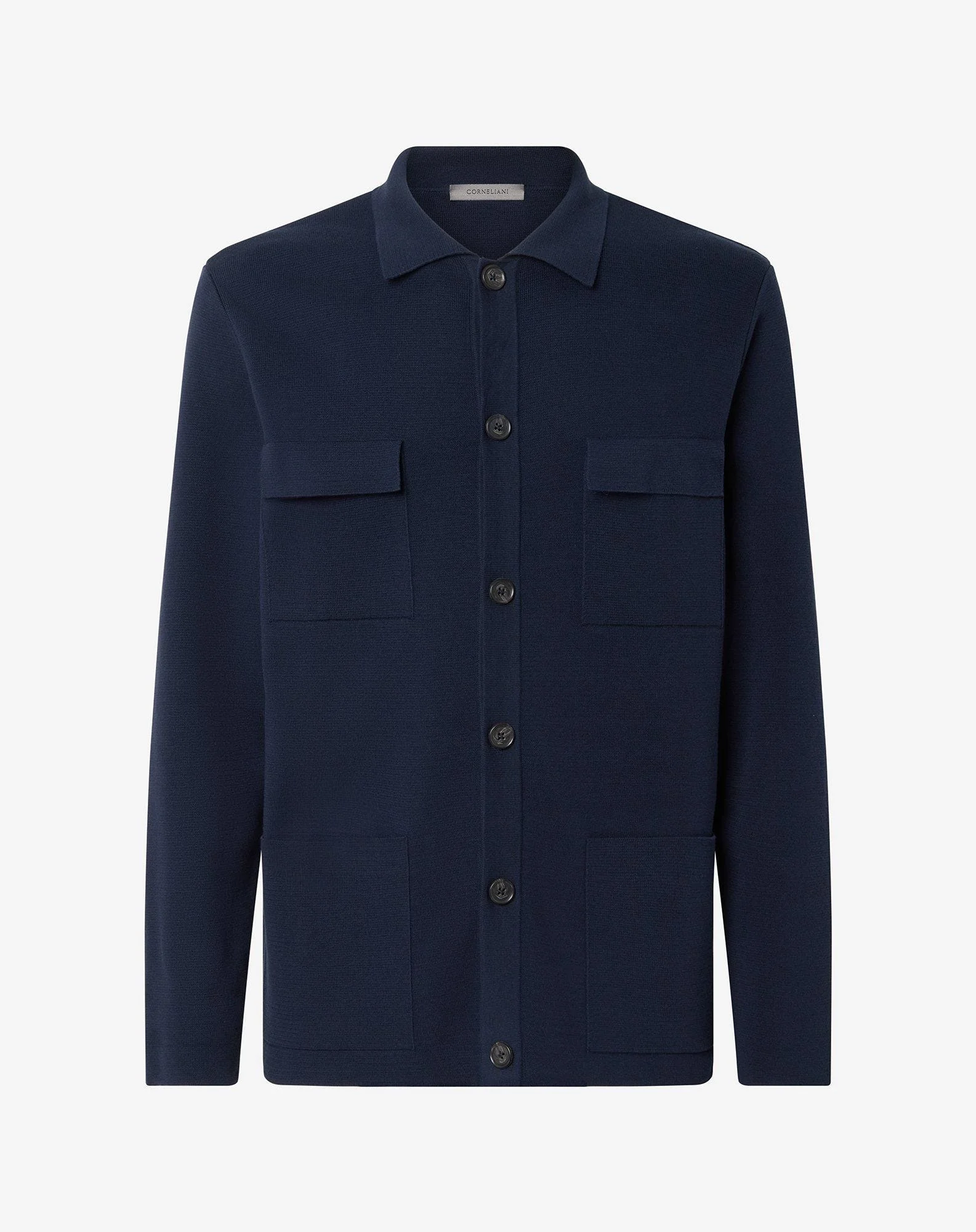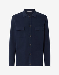 Crafted in Italy from the softest cotton, this long-sleeved blue shirt is the ultimate in easy elegance, the perfect match for denim trousers. DETAILS & MATERIALS - 100% cotton - long sleeve knit shirt - Made in Italy FIT & WASHING - The model is wearing a size 50 (IT). Model measurements: height 187cm, chest 98cm, waist 82cm, hips 98cm. Dry clean with perchloroethylene, do not bleach, maximum iron temperature 110°, do not tumble dry