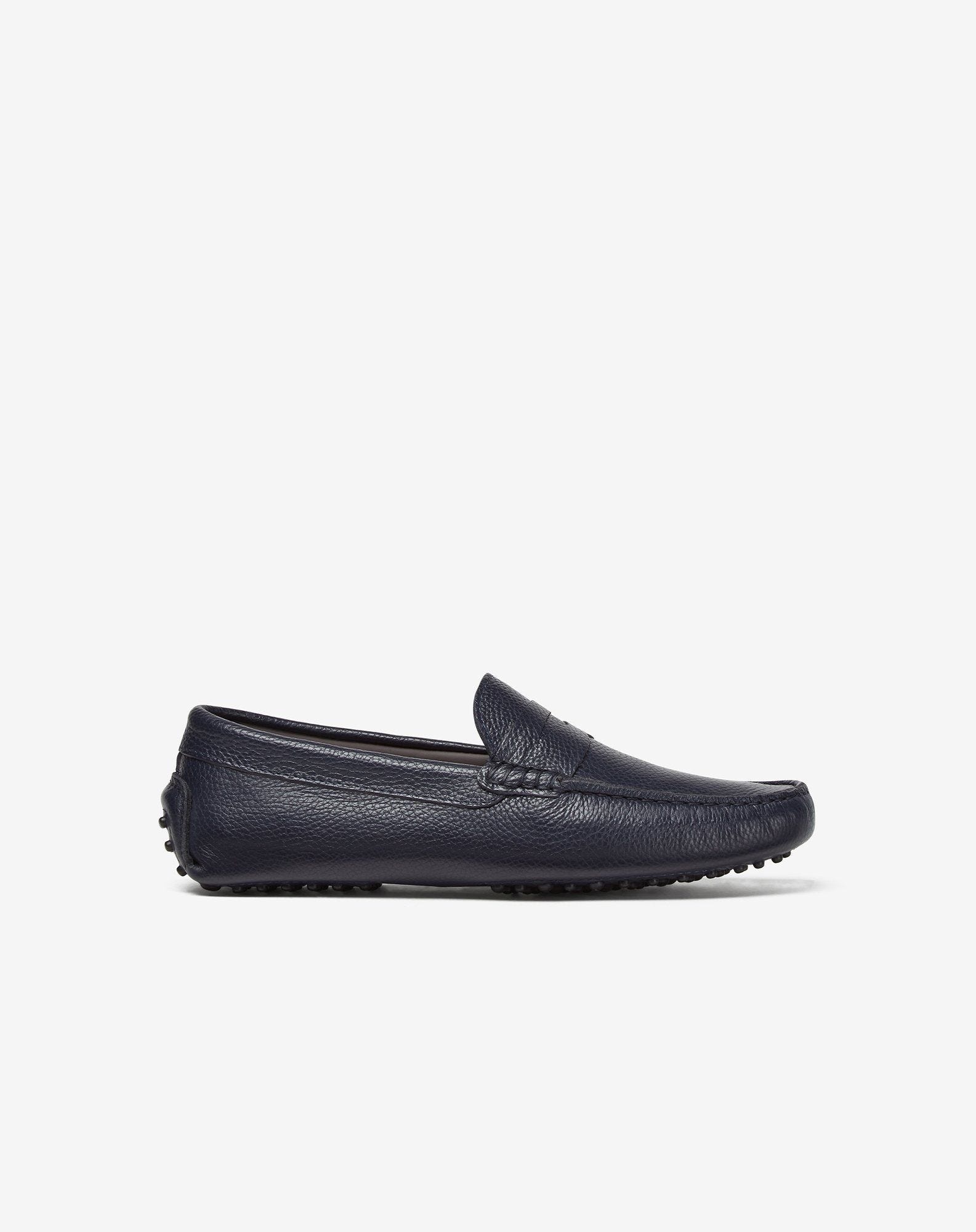 With their clean-cut design, these navy blue penny loafers with rubber grommet sole are the ideal way to complete a look with simple elegance. DETAILS & MATERIALS - 100% leather - Penny loafers made from calfskin with dollar print - rubber grommet sole - Made in Italy