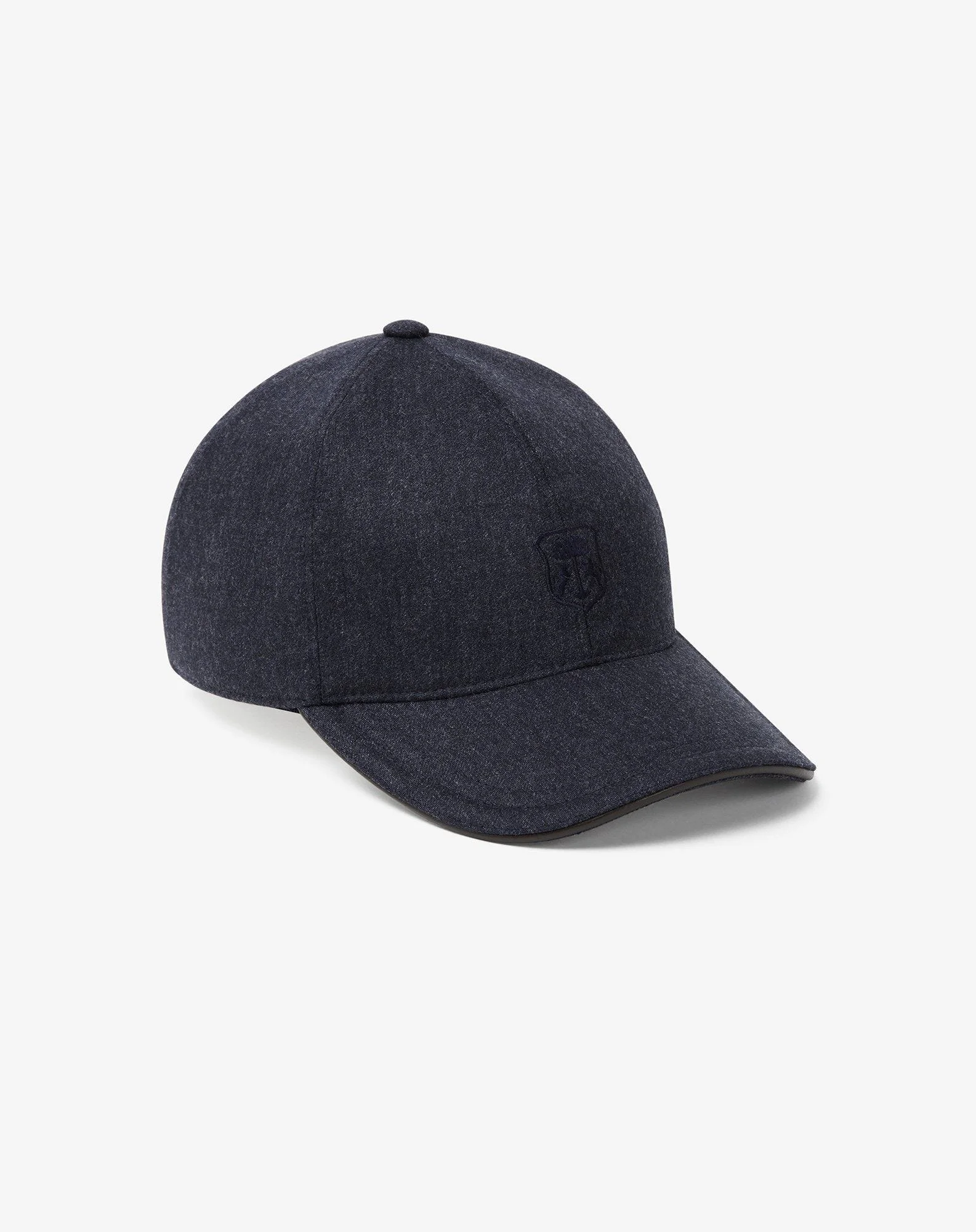 Crafted from a fine mix of virgin wool and cashmere, this blue baseball cap with adjustable leather closure with buckle combines sporty and sophisticated features. The Corneliani crest embroidery in front adds a distinctive touch. Manufactured in Italy, this is the ideal accessory to complete any casual look with style. DETAILS AND MATERIALS - 94% virgin wool, 4% cashmere, 2% elastane - 6-panel baseball cap - adjustable leather closure with buckle - Corneliani crest embroidery - Made in Italy FIT & WASHING - Dry clean with perchloroethylene, do not bleach, do not tumble dry