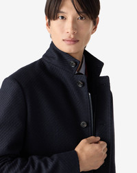 Essential design and modern spirit define this blue single-breasted jacket made from wool and cashmere for a relaxed yet assertive style. Its unlined construction enhances the garment's lightness, while its zip and button front closure highlights its contemporary feel. The standing collar, appliqued pockets and no lapels conjure to create a functional yet sophisticated charm. The breast pocket adds a discreet sartorial touch. Fully Made in Italy. DETAILS AND MATERIALS - 95% virgin wool, 5% cashmere - 4-button jacket - unlined - drop 7 - regular fit - zip and button closure - no lapel - standing collar - appliqued breast pocket - appliqued side pockets - length 75 cm - Made in Italy FIT & WASHING - Dry clean with perchloroethylene, do not bleach, do not tumble dry, maximum iron temperature 110°