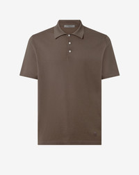 The brown short-sleeved, button-up ultra-fine ice cotton polo shirt is among the essentials in the Corneliani man's summer wardrobe. The cool and delicate feel of this unique 18-gauge fabric is ideal for warm weather wear thanks to its high breathability and extreme softness. Available in several colours, it is the perfect solution for completing a casual yet refined look. DETAILS & MATERIALS - 100% cotton - short-sleeved zipped polo shirt. Pima ice cotton crepe - 18 gauge - made in Italy FIT & WASHING - The model is wearing a size 50 (IT). Model measurements: height 187cm, chest 98cm, waist 82cm, hips 98cm. Dry clean with perchloroethylene, do not bleach, maximum iron temperature 110°, do not tumble dry
