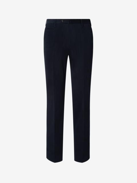Made from a refined stretch cashmere and cotton gabardine, these brown trousers elegantly interpret contemporary tailoring. The flat front design, combined with a regular fit, enhances the silhouette with balance and comfort. The tailored details reveal the craftsmanship: front closure with waistband and zip, belt loops and V-shaped back vent, coin pocket. Lined and finished with a 19 cm leg bottom, they are a versatile and sophisticated garment, perfect for enhancing the men's wardrobe with a discreet but distinctive style. DETAILS AND MATERIALS - 95% cotton, 3% cashmere, 2% elastane - stretch cashmere and cotton gabardine flat front trousers - drop 7 - regular fit - lined - front zip and waistband closure - belt loops and V-shaped vent on rear - watch pocket - slant side pockets - welted back pockets with zip - bottom width 19 cm FIT & WASHING - Dry clean with perchloroethylene, do not bleach, do not tumble dry, maximum iron temperature 110°