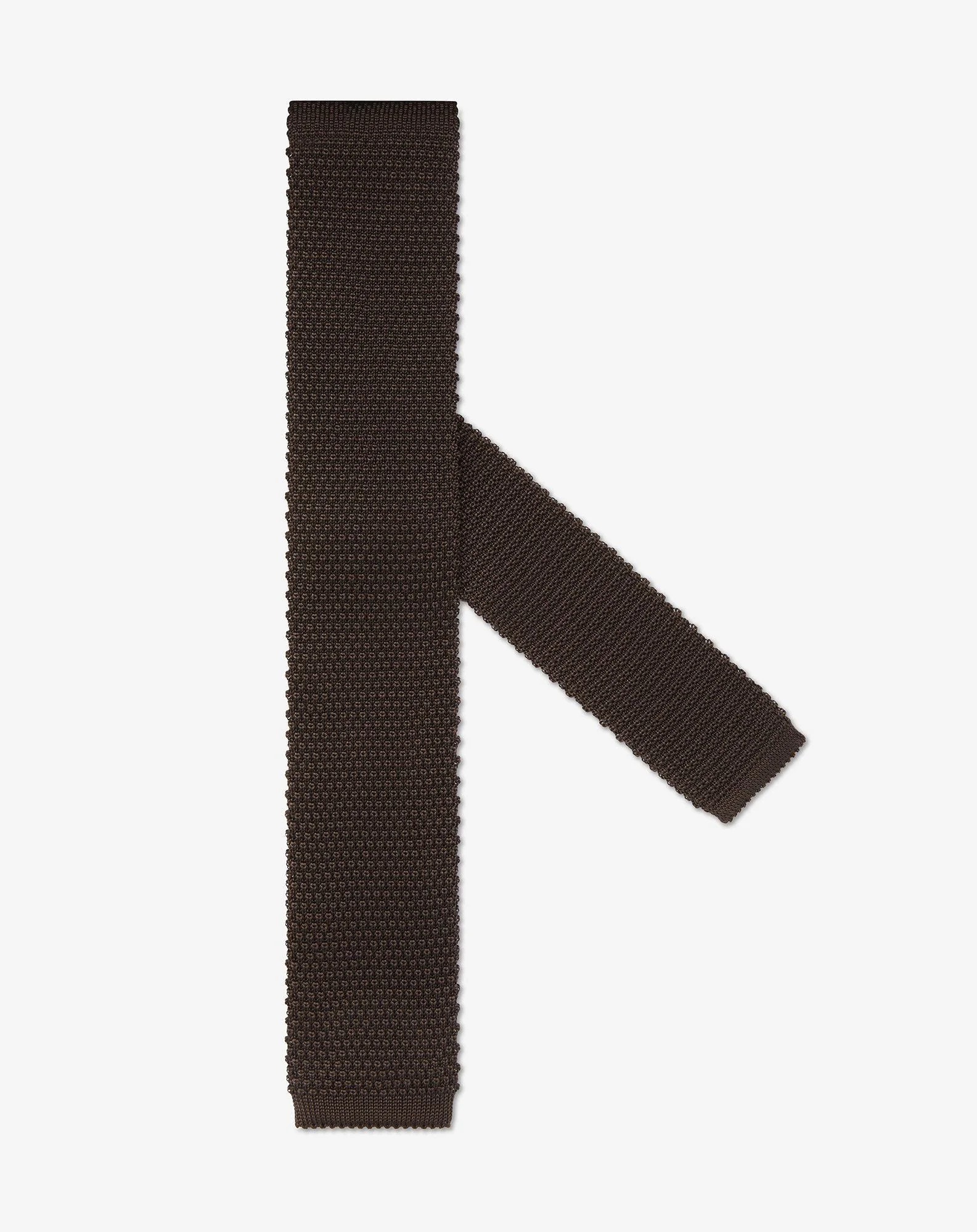 Minimalist and sophisticated, this brown knit wool tie combines sophisticated texture and everyday versatility. Crafted from 100% wool, it features a thin blade for modern looks inspired by tradition. A distinctive detail, perfect for completing the outfit with a touch of casual elegance. Fully Made in Italy. DETAILS AND MATERIALS - 100% wool - knit tie - blade 5.5 cm - Made in Italy FIT & WASHING - Dry clean with perchloroethylene, do not bleach, do not tumble dry, maximum iron temperature 110°