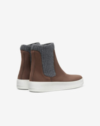 A contemporary revisitation of the iconic Chelsea boots, these brown nabuk boots feature a distinctive tonal knit insert and white box sole, adding an urban touch to the classic design. Comfort and style combine in this pair of shoes, fully Made in Italy. DETAILS & MATERIALS - 100% leather - Nabuk Chelsea boots - knit inserts - white box sole - Made in Italy