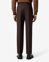 Expression of a relaxed and tailored elegance, these brown pure wool trousers are part of the Lightness Project, designed to offer lightness and comfort without sacrificing refinement.The two-pleat design enhances the regular fit, ensuring freedom of movement and a distinctive allure. The front waistband and zip closure, combined with belt loops, ensures practicality and a neat silhouette. The watch pocket, together with the vertical side pockets and the double-welted back pockets, complete the garment with functional and elegant details. With their 19 cm bottom, these trousers perfectly interpret the Corneliani philosophy: tailored lightness and impeccable style, strictly Made in Italy DETAILS AND MATERIALS - 100% virgin wool - 2-dart trousers - unlined - drop 7 - regular fit - front zip and waistband closure - belt loops - watch pocket - vertical side pockets - double-welted back pockets - bottom width 19 cm FIT & WASHING - Dry clean with perchloroethylene, do not bleach, do not tumble dry, maximum iron temperature 110°