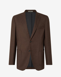 This brown jacket blends fine virgin wool fibers with the smooth elegance of silk, achieving a super light, unlined construction for weightless comfort. Enhanced with AMF stitching and notch lapels, the 2-button style features breast pocket, appliqued side pockets and double vent at the back for a versatile touch. DETAILS AND MATERIALS - 80% virgin wool, 20% silk - 2-Button jacket - super light construction - unlined - drop 7 - regular fit - AMF stitching at the edge - notch lapels - breast pocket - appliqued side pockets - double rear vent - length 74 cm FIT & WASHING - This garment has a regular fit. Dry clean with perchloroethylene, do not bleach, do not tumble dry, maximum iron temperature 110°