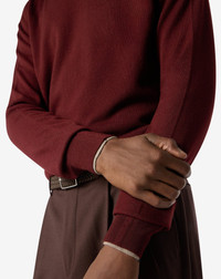 This burgundy long-sleeved turtleneck jumper is made from extra fine combed triple twisted merino wool, a yarn characterized by high elasticity, strength and a naturally bright feel. With its medium gauge, this yarn is durable and resistant to peeling, as well as being super practical: can be machine-washed at low temperatures. The yarn is OEKO-TEX-certified, to guarantee responsible and traceable quality. DETAILS AND MATERIALS - 100% virgin wool - long-sleeved turtleneck jumper made from extra fine combed triple twisted wool - 12 gauge - Made in Italy FIT & WASHING - Dry clean with perchloroethylene, do not bleach, do not tumble dry, maximum iron temperature 110°