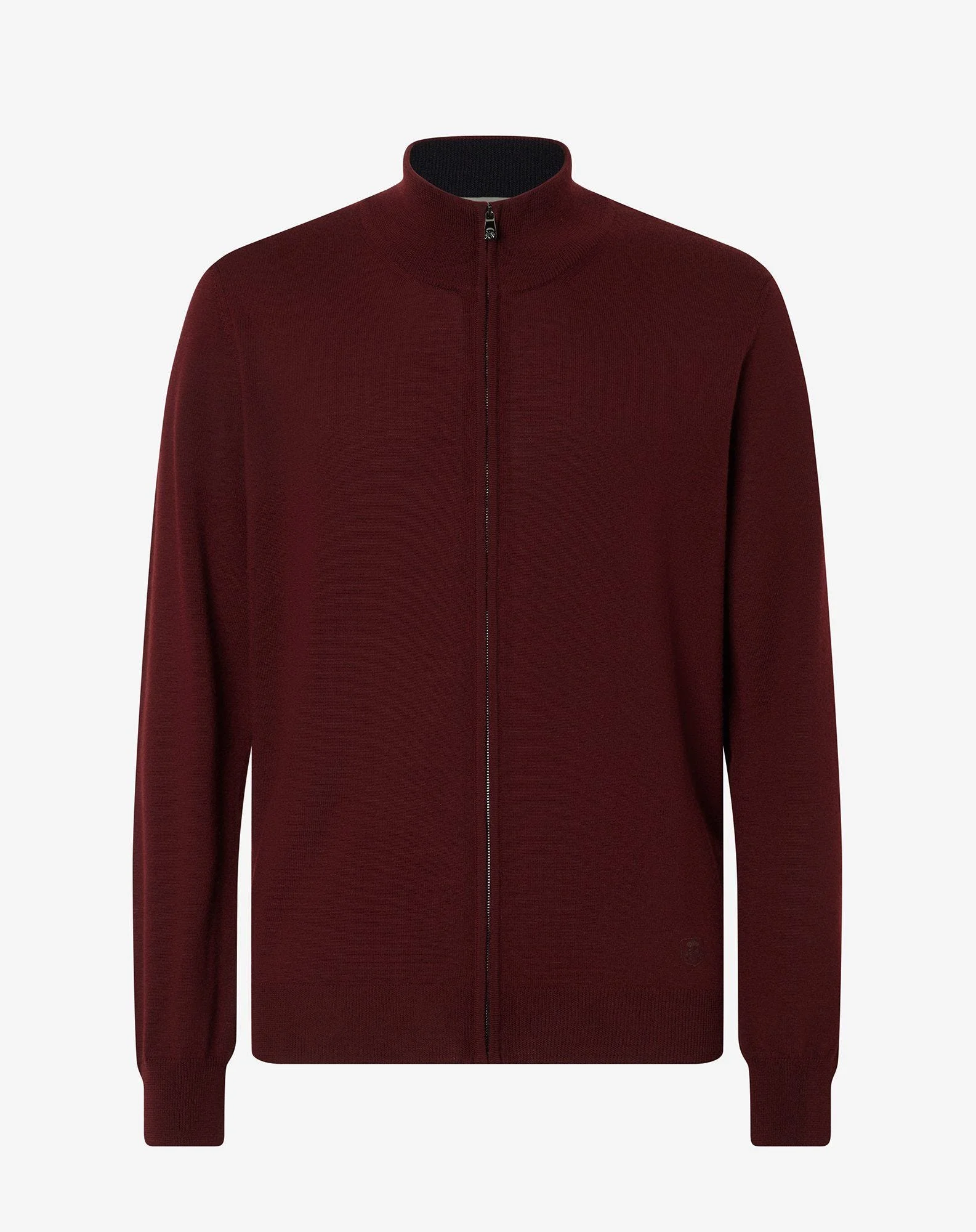 With an essential sophisticated design, this burgundy full zip sweater made from extra fine wool combines functionality and textile quality. Made from pure triple-twisted combed merino wool in 12 gauge, it stands out for its clean appearance and the natural brilliance of its colour. The triple twisted yarn guarantees high elasticity, strength and durability over time, reducing the risk of pilling and ensuring easy maintenance, even in the washing machine at low temperatures. Fully traceable and responsible, it is OEKO-TEX® certified, a guarantee of quality and safety. DETAILS AND MATERIALS - 100% virgin wool - full zip long-sleeved jumper made from pure extra fine combed triple twisted wool - 12 gauge - Made in Italy FIT & WASHING - Dry clean with perchloroethylene, do not bleach, do not tumble dry, maximum iron temperature 110°