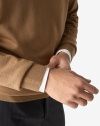 This camel beige long-sleeved crew neck jumper is made from extra fine combed triple twisted merino wool, a yarn characterized by elasticity, strength and a compact, bright feel. With its medium gauge, this garment is durable and resistant to peeling, as well as being machine-washable at low temperatures. The yarn is OEKO-TEX-certified, to guarantee responsible and traceable quality. DETAILS AND MATERIALS - 100% virgin wool - long-sleeved crew neck jumper made from extra fine combed triple twisted merino wool - 12 gauge - Made in Italy FIT & WASHING - Dry clean with perchloroethylene, do not bleach, do not tumble dry, maximum iron temperature 110°