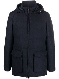 cargo-pocket cashmere padded jacket navy blue wool-cashmere blend down-feather filling padded design classic hood front zip fastening long sleeves two front pouch pockets Made in Italy Composition Outer: Cashmere 95%, Other fibres 3%, Wool 2% Lining: Polyester 100%, Cotton 100%, Feather Down 100% SIZE & FIT Model measurements Height 6 ft 2 in(1.87 m) Bust/Chest 37 in(94 cm) Hips 33.85 in(86 cm) Waist 27.95 in(71 cm) FittingInformation This piece fits true to size. We recommend you get your regular size Cut for a loose fit Made with a mid-weight non-stretch fabric Washing instructions Dry Clean Only