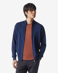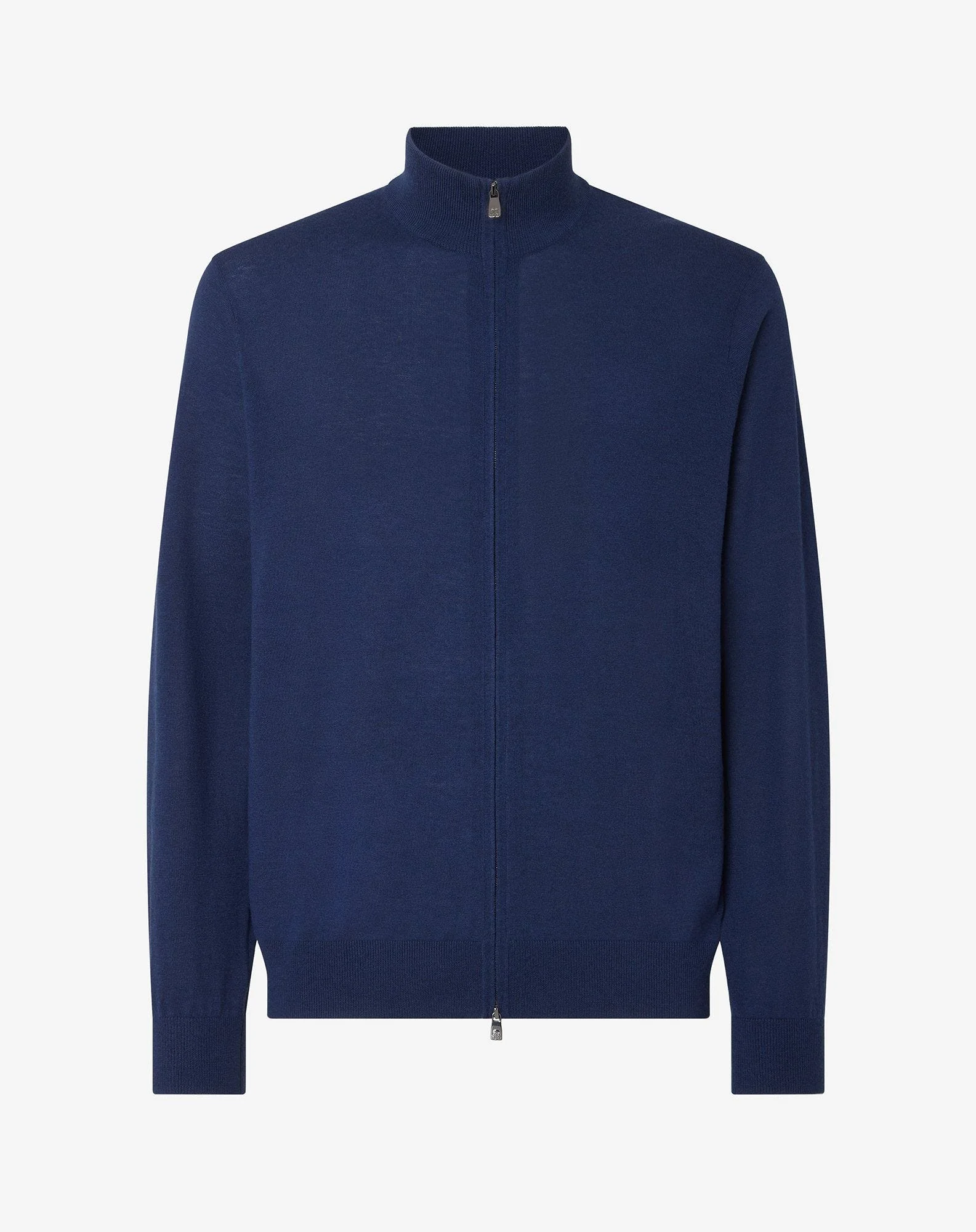 Classic cut China blue full zip knitwear enhanced with a blend of cashmere and silk. The perfect versatile garment for the Spring season. DETAILS & MATERIALS - 70% cashmere, 30% silk - long sleeve full zip knitwear - made in Italy FIT & WASHING - The model is wearing a size 50 (IT). Model measurements: height 187cm, chest 98cm, waist 82cm, hips 98cm. Dry clean with perchloroethylene, do not bleach, maximum iron temperature 110A°, do not tumble dry