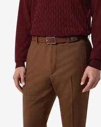 The cognac braided waxed cotton belt is the perfect accessory for a relaxed, casual look. The intricate braiding not only enhances its visual appeal but also adds natural stretch for improved comfort. Crafted from durable waxed cotton, it offers strength and resilience, making it ideal for everyday wear. DETAILS & MATERIALS - 80% cotton, 10% elastane, 10% leather - braided waxed cotton belt - height 30 mm - nickel-free buckle - Made in Italy
