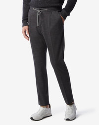 The men's wool jersey joggers feature a classic fit and an attention to detail that makes any casual garment impeccable. The jersey fabric enhances the trousers’ sporty and comfortable nature, for a versatile, easy look. DETAILS AND MATERIALS - 92% lana 8% polyamide - 1-pleated - classic fit - drop 6 - side slash pockets - back buttoned welt pockets - bottom width cm 18.5 FIT & WASHING - This garment has a classic fit. The model is wearing a size 50 (IT). Model measurements: height 187cm, chest 98cm, waist 82cm, hips 98cm. Dry clean. Do not bleach. Do not tumble dry. The garment can be steam or dry ironed at a low temperature (150 °C).