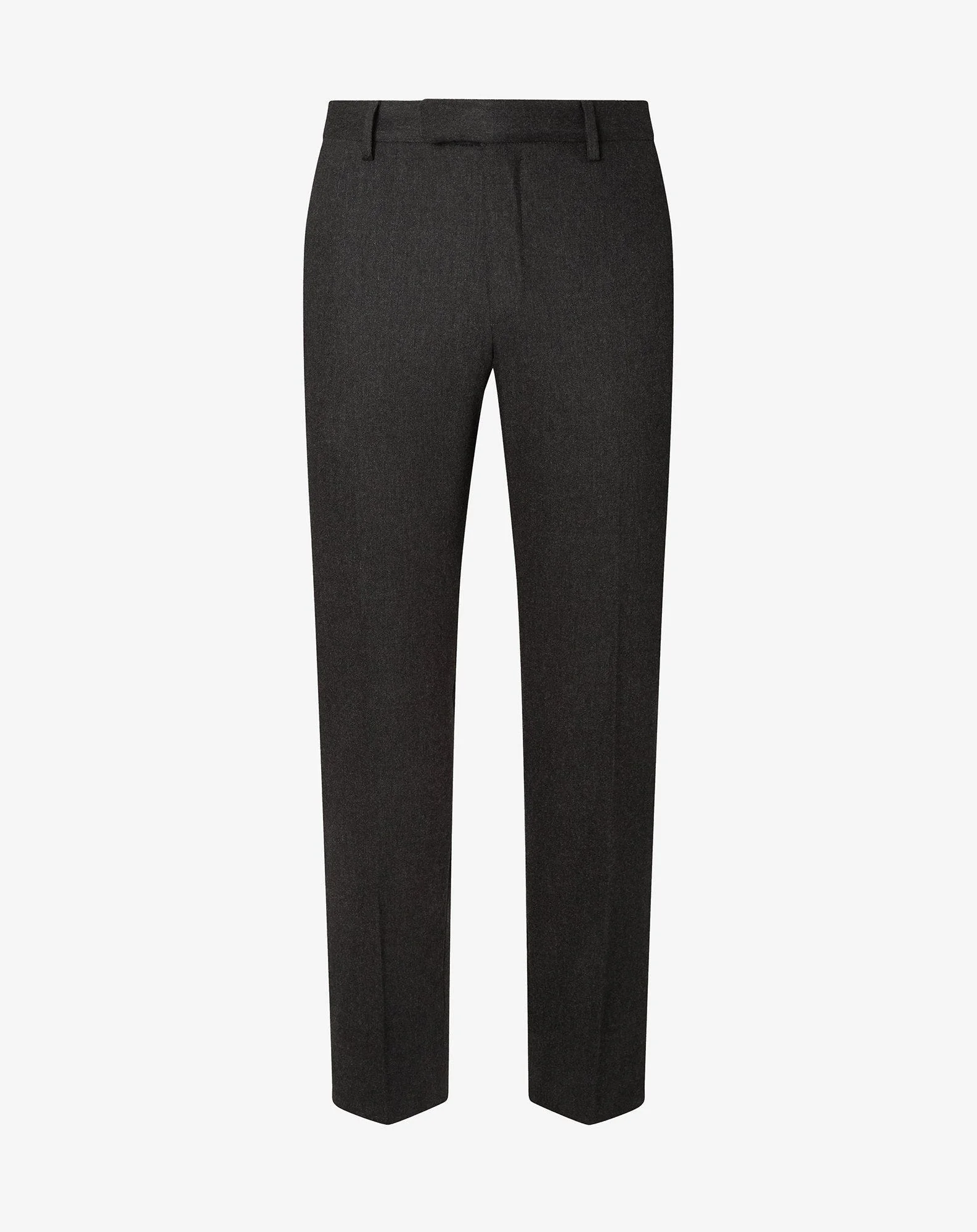Garment-dyed greige chinos crafted from high-quality stretch cotton for a modern and comfortable wear. Unlined and flat front, these trousers feature regular fit, drop 7 size and a clean silhouette that will suit any occasion. Zip closure, belt loops and welt back pockets complete this versatile, minimalist garment. The 18 cm leg bottom defines their contemporary look and well crafted details. DETAILS AND MATERIALS - 94% virgin wool, 4% cashmere, 2% elastane - flat front chino trousers - unlined - drop 7 - regular fit - zip and waistband closure - belt loops - waistband with elastic on the back - slant side pockets - welt back pockets - bottom width 19 cm FIT & WASHING - Dry clean with perchloroethylene, do not bleach, do not tumble dry, maximum iron temperature 110°