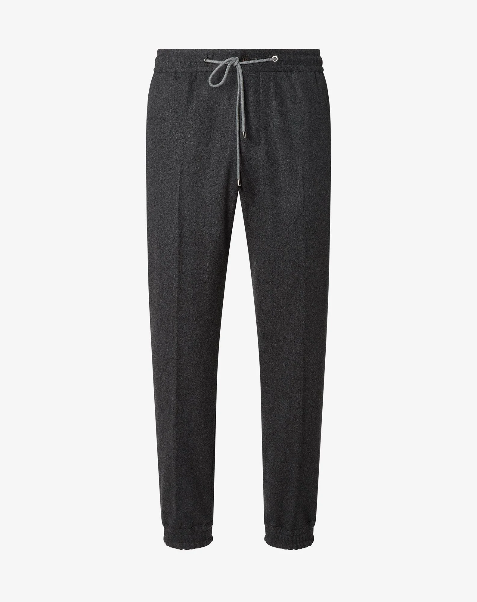 Melange grey chinos made from fine wool and stretch cashmere, designed to combine elegance with performance. Regular fit and superior comfort guaranteed by the stretch waistband on the rear and balanced drop 7. This garment is part of the Techwool Project, a selection of garments featuring this high-tech fabric blending the natural charm of merino wool with the softness and durability of polyamide fibres. This combination generates a compact and versatile texture that is also wrinkle-free and water-repellent, perfect for those who seek a sophisticated yet functional garment. Unlined, flat front trousers featuring waistband, slanted side pockets and welt back pockets, for dynamically smart style that fits both urban and outdoor days. DETAILS AND MATERIALS - 98% cashmere, 2% elastane - joggers - sewn ribbed detail in front - drop 7 - regular fit - drawstring at the waist - elastic at the hem - 4-hole button closure - zipped flap - slant side pockets - welt back pockets with button FIT & WASHING - Dry clean with perchloroethylene, do not bleach, do not tumble dry, maximum iron temperature 110°