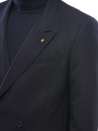 double-breasted blazer Highlights - Dark blue - Lapel pin - Double-breasted - Button fastening - Flap pockets - Four-button cuffs Made in Italy Composition Virgin Wool 100% Washing instructions Read Manufacturer Guidelines