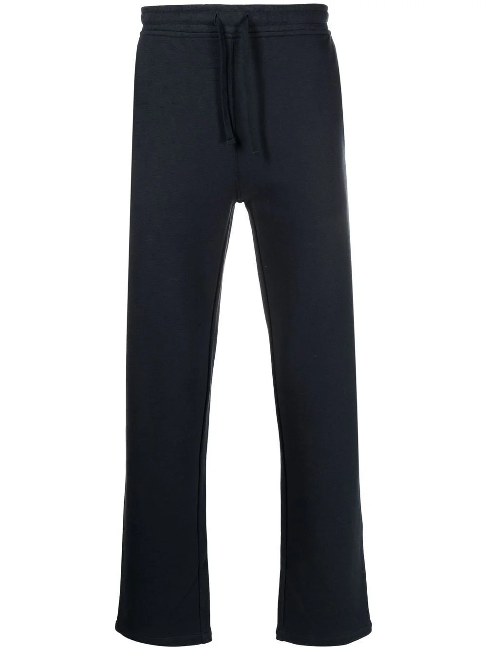 elasticated drawstring-waist trousers navy blue cotton straight leg elasticated drawstring waistband two side inset pockets Imported Composition Outer: Cotton 100% Lining: Cotton 100% SIZE & FIT Model measurements Height 6 ft 1 in(1.85 m) Bust/Chest 37.79 in(96 cm) Hips 37.4 in(95 cm) Waist 30.7 in(78 cm) FittingInformation This piece fits true to size. We recommend you get your regular size Designed for a slim fit at the waist and loose over the leg Made with a mid-weight fabric