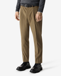 These green soft stretch cotton drill trousers exude a relaxed and functional elegance. The front pleat and regular fit naturally enhance the male silhouette, while the side adjusters at the waist allow for a custom fit for impeccable comfort.The design is completed by slash side pockets, back flap pockets and zip closure, details that reflect Corneliani's sartorial care. DETAILS AND MATERIALS - 98% cotton, 2% elastane - single pleat soft stretch cotton drill trousers - unlined - drop 6 - regular fit - regular waist - zip closure - belt loops - side adjusters at the waist - slant side pockets - flap back pockets - bottom width 18 cm FIT & WASHING - This garment has a regular fit. The model is wearing a size 50 (IT). Model’s measurements: height 187cm, chest 98cm, waist 82cm, hips 98cm. Dry clean with perchloroethylene, do not bleach, do not tumble dry, maximum iron temperature 110°