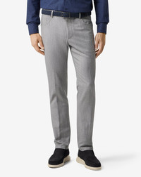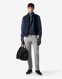 A contemporary approach to denim, combining tailoring tradition with evolved functionality. Made from a fine blend of cotton, virgin wool and elastane, these charcoal grey 5-pocket trousers have a slim fit with a regular waist, for an essential and versatile look. Part of the Washable Project, they can be comfortably machine washed at 30°, preserving their impeccable line. Packaged with a special washing bag, these trousers represent the perfect balance between practicality, performance and timeless style. DETAILS AND MATERIALS - 50% cotton, 46% virgin wool, 3% polyamide, 1% elastane - machine washable 5-pocket denim trousers - unlined - drop 6 - slim fit - regular waist - belt loops - 1.8 cm sewn hem - bottom width 18.5 cm - comes with washing machine protective bag FIT & WASHING - This garment has a slim fit. The model is wearing a size 50 (IT). Model’s measurements: height 187cm, chest 98cm, waist 82cm, hips 98cm. Maximum wash temperature 30°, do not bleach, dry clean with perchloroethylene, do not tumble dry, maximum iron temperature 110°