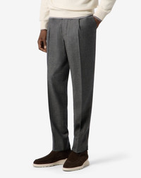 Expression of a versatile and refined style, these micropatterned grey stretch wool flannel joggers combine elegance and functionality in a garment with a contemporary spirit. The front pleat, regular fit and elastic waistband with drawstring define a tailored comfort that adapts perfectly to modern life. Part of the Washable Project, they can be comfortably machine washed at 30° while keeping their silhouette intact. They are supplied with a special washing bag, to accompany your most dynamic moments in style. DETAILS AND MATERIALS - 98% virgin wool, 2% elastane - single-dart micropatterned stretch wool flannel joggers - unlined - drop 6 - regular fit - regular waist - zip closure - elastic waistband with drawstring - slanted side pockets - welt back pockets - bottom width 18.5 cm FIT & WASHING - This garment has a regular fit. The model is wearing a size 50 (IT). Model’s measurements: height 187cm, chest 98cm, waist 82cm, hips 98cm. Dry clean with perchloroethylene, do not bleach, do not tumble dry, maximum iron temperature 110°