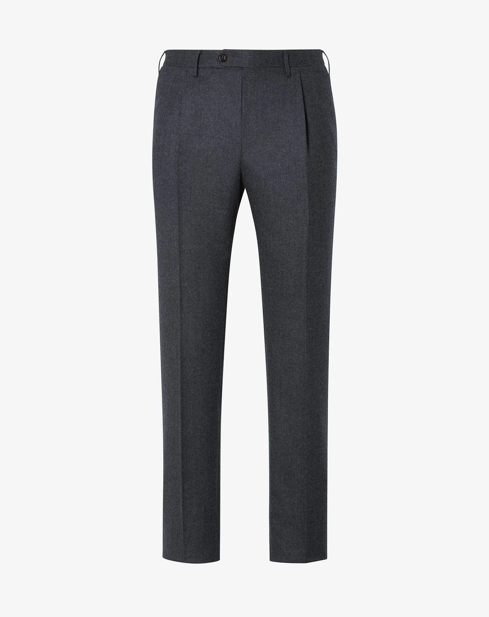 The men's jaspe wool flannel trousers have a classic fit and an elegant design, while their versatile nature make this style a must-have in the men’s winter wardrobe. The ultra-soft fabric is enhanced with the mix of colours in the weave, adding brightness and personality to the garment. A dart at the waist adds to the comfort and ease of movement. DETAILS AND MATERIALS - 100% virgin wool - 1-pleated pants - slim fit - drop 7 - side slash pockets - jetted back pockets with buttons - belt loops - bottom width 19 cm FIT & WASHING - This garment has a classic fit. The model is wearing a size 50 (IT). Model measurements: height 187cm, chest 98cm, waist 82cm, hips 98cm. Dry clean. Do not bleach. Do not tumble dry. The garment can be steam or dry ironed at a low temperature (150 °C).