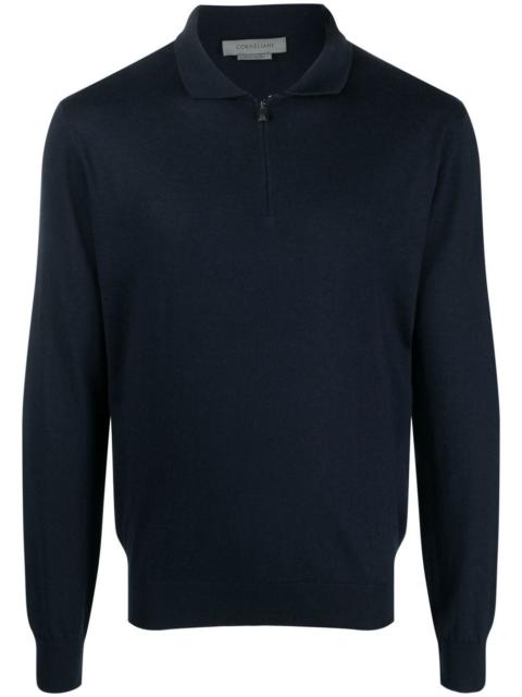 half-zip sweatshirt Highlights - Navy blue - Cotton-cashmere blend - Polo collar - Long sleeves Made In Italy Composition Cotton 50%, Cashmere 30%, Silk 20% SIZE & FIT Model measurements Height 6 ft 2 in(1.88 m) Bust/Chest 36.61 in(93 cm) Hips 35.82 in(91 cm) Waist 27.95 in(71 cm) FittingInformation This piece fits true to size. We recommend you get your regular size Cut for a relaxed fit Made with a mid-weight fabric Washing instructions Hand Wash