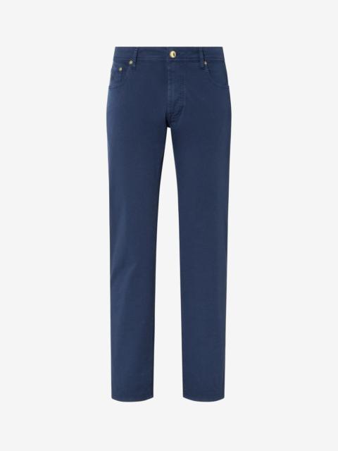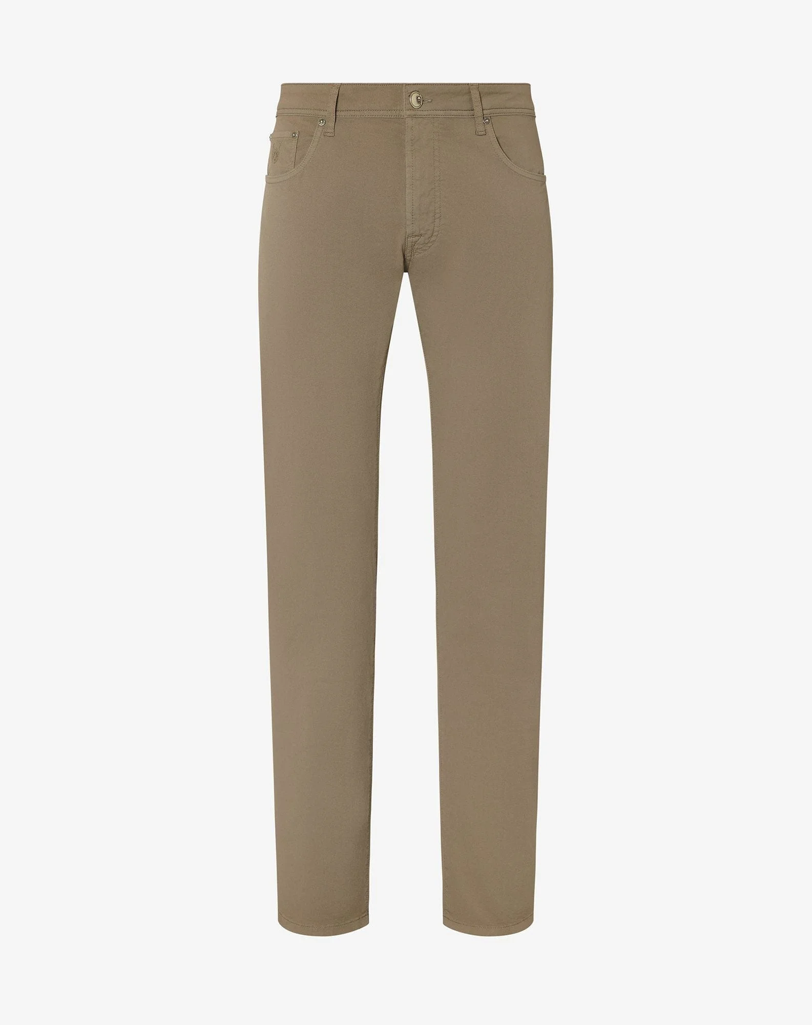 The men's khaki stretch gabardine five-pocket trousers feature a classic fit and a series of details designed to identify the garment, such as the crest on the coin pocket and leather label on the back. Designed as a versatile garment, the 5-pocket trouse DETAILS & MATERIALS - 97% cotton, 3% elastane - garment-dyed stretch cotton gabardine 5-pocket trousers - regular fit - Corneliani crest on coin pocket and rear patch - logo buttons and rivets - bottom width 18 cm FIT & WASHING - This garment has a classic fit. The model is wearing a size 34 (IT). Model measurements: height 187cm, chest 98cm, waist 82cm, hips 98cm. Dry clean with perchloroethylene, do not bleach, maximum iron temperature 110A°, do not tumble dry