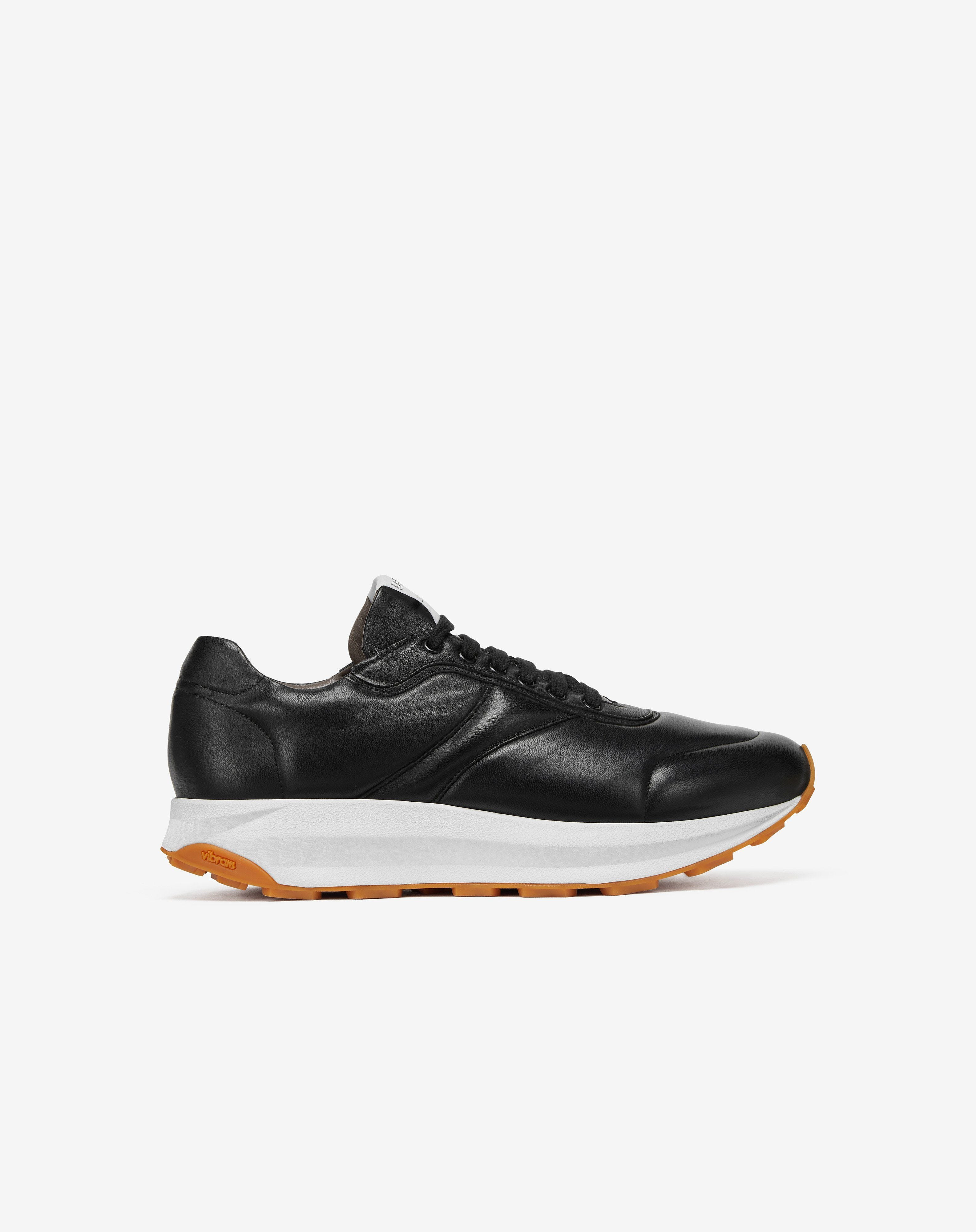 In their single-material nappa leather version, the Earthly trainers are the new icon of the Corneliani man. Their essential, destructured soft runner construction - crafted with the ‘sacchetto’ working method and assembled with a cotton lace - confers extra softness and comfort to the upper, while the trainers’ two-material sole combines the Vibram XS TREK technology with EVA tread to ensure top flexibility, lightness, traction and shock absorption on any type of terrain. DETAILS & MATERIALS - 100% goatskin - soft nappa leather running shoes - white rubber sole - contrasting honey-coloured tread - Made in Italy