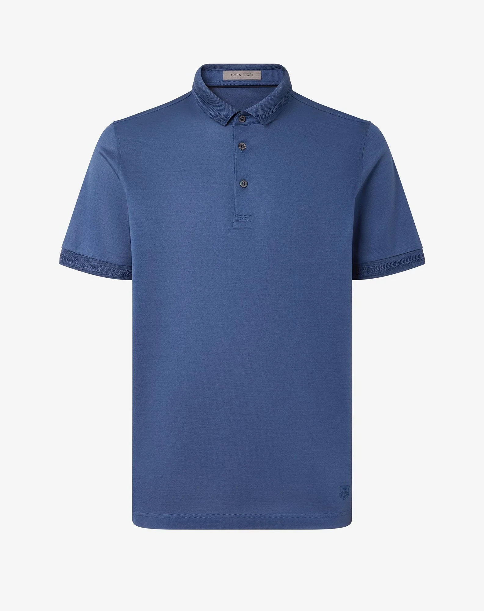 The Men's light blue short-sleeved lisle thread polo shirt is the ultimate all-rounder of the men's summer wardrobe. Cool and versatile, it adapts to different situations ensuring maximum comfort and breathability. Whether paired with more formal suits or sporty outfits, Corneliani polo shirts are a staple of dynamic, contemporary looks. DETAILS & MATERIALS - 100% cotton - short sleeve lisle thread polo shirt with buttons - Corneliani logo on the side - Made in Italy FIT & WASHING - The model is wearing a size 50 (IT). Model measurements: height 187cm, chest 98cm, waist 82cm, hips 98cm. Dry clean with perchloroethylene, do not bleach, maximum iron temperature 110°, do not tumble dry