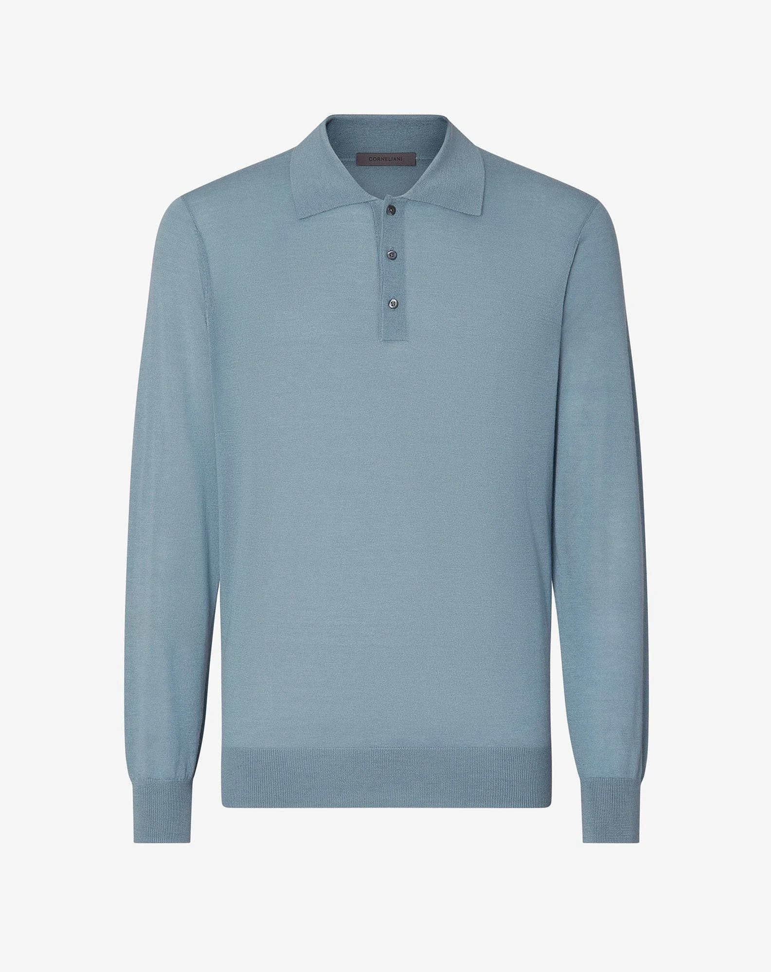 The ultra-fine version of the Men’s crew neck cashmere and silk jumper is among the essentials of the Corneliani man's summer wardrobe. Crafted from an almost impalpable 18-gauge yarn, it is perfect under a jacket in a formal outfit or matched with denim for a casual style. DETAILS & MATERIALS - 70% cashmere, 30% silk - long sleeve button-up polo shirt - 18 gauge - Made in Italy FIT & WASHING - The model is wearing a size 50 (IT). Model measurements: height 187cm, chest 98cm, waist 82cm, hips 98cm. Dry clean with perchloroethylene, do not bleach, iron at 110° maximum, do not use dryer