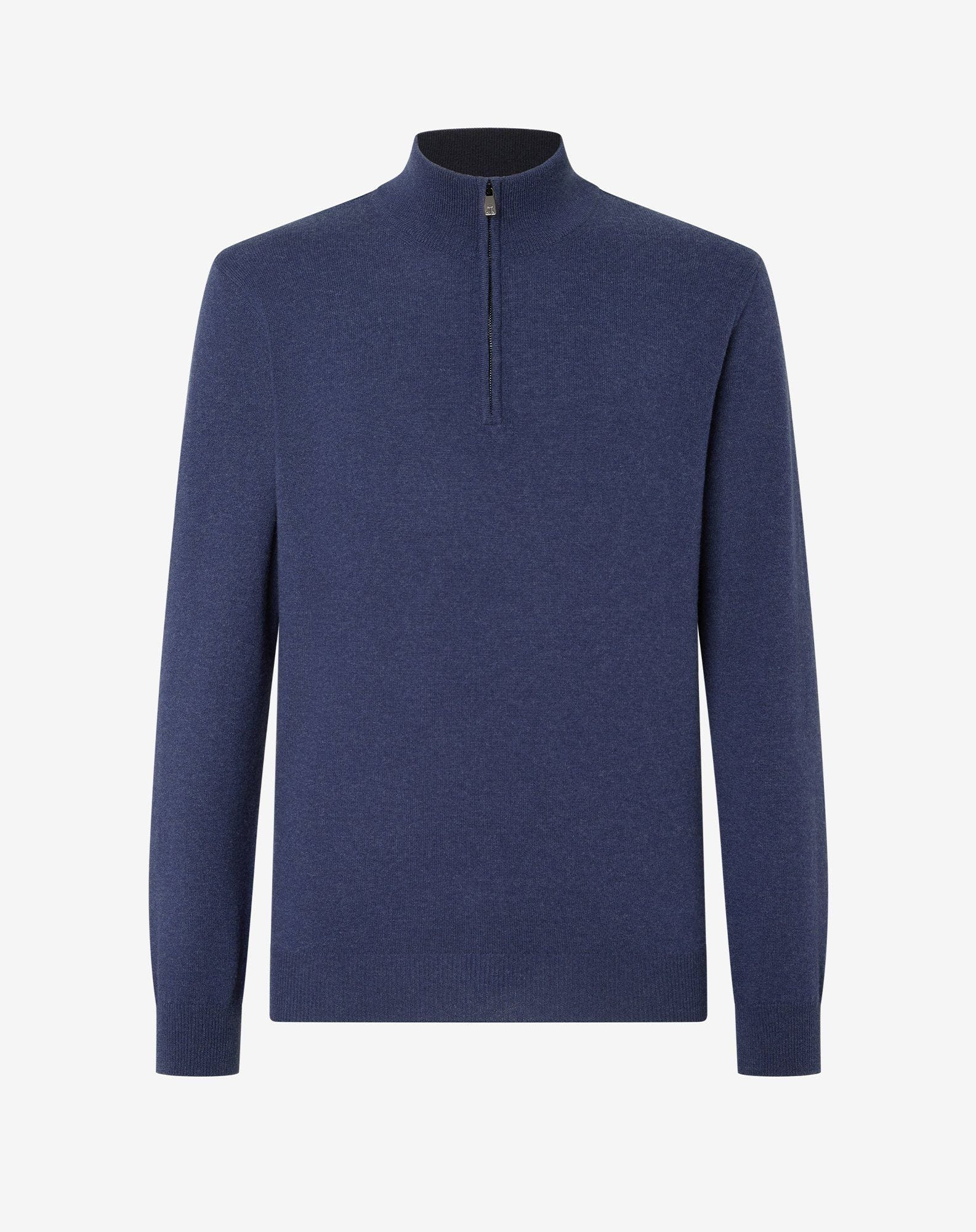 The gauge 12 men's wool and cashmere turtleneck is the superior quality garment needed in a man's winter wardrobe. Elasticity and high resistance are its innovative features, in addition to great softness and breathability due to the presence of cashmere in the weave. The zip closure highlights the sporty nature of this versatile garment that naturally matches any casual look. DETAILS AND MATERIALS - 90% virgin wool, 10% cashmere - long-sleeved zipped mock turtleneck jumper - 12 gauge - made in Italy FIT & WASHING - The model is wearing a size 50 (IT). Model measurements: height 188cm, chest 98cm, waist 81cm, hips 97cm. Dry clean with perchloroethylene, do not bleach, maximum iron temperature 110°, do not tumble dry