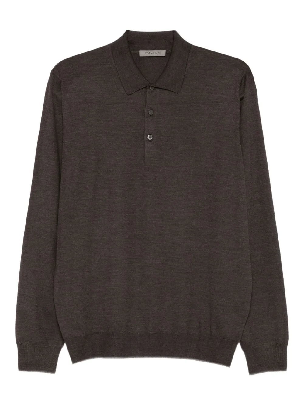 long-sleeve polo shirt Highlights - Dark-brown - Polo neck - Long sleeves - Button fastening - Ribbed hem Imported Composition Virgin Wool 100% SIZE & FIT Model measurements Height 6 ft 0 in(1.84 m) Bust/Chest 35.82 in(91 cm) Hips 37 in(94 cm) Waist 28.34 in(72 cm) Washing instructions Read Manufacturer Guidelines