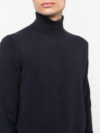 long-sleeve roll-neck jumper Highlights - Midnight blue - Virgin wool-cashmere blend - Fine knit - Silver-tone logo plaque - Roll neck - Long sleeves - Ribbed cuffs - Ribbed hem Made in Italy Composition Virgin Wool 90%, Cashmere 10% SIZE & FIT Model measurements Height 6 ft 1 in(1.85 m) Bust/Chest 35.82 in(91 cm) Hips 37.79 in(96 cm) Waist 29.13 in(74 cm) FittingInformation This piece fits true to size. We recommend you get your regular size Cut for a relaxed fit Made with a mid-weight fabric Washing instructions Hand Wash