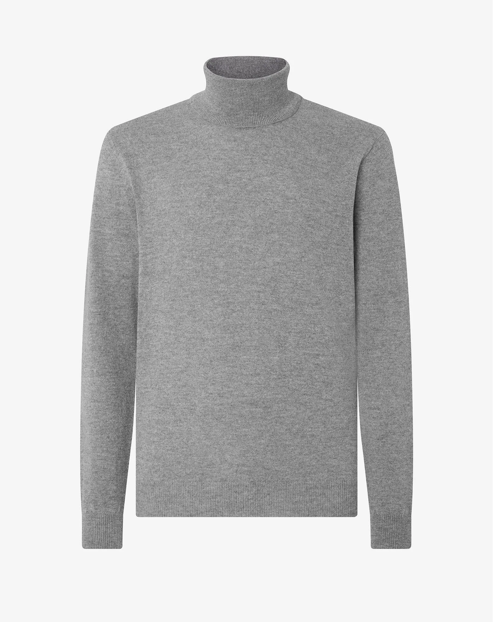 This melange grey long-sleeved mock turtleneck is made from a fine carded merino wool and cashmere yarn in 12 gauge. With its softening treatment achieving an incredibly soft feel, it combines comfort with sophistication. The yarn is MULESING FREE-certified to guarantee ethical and responsible production. DETAILS AND MATERIALS - 90% virgin wool, 10% cashmere - long-sleeved turtleneck jumper made from merino wool and carded cashmere - 12 gauge - Made in Italy FIT & WASHING - Dry clean with perchloroethylene, do not bleach, do not tumble dry, maximum iron temperature 110°