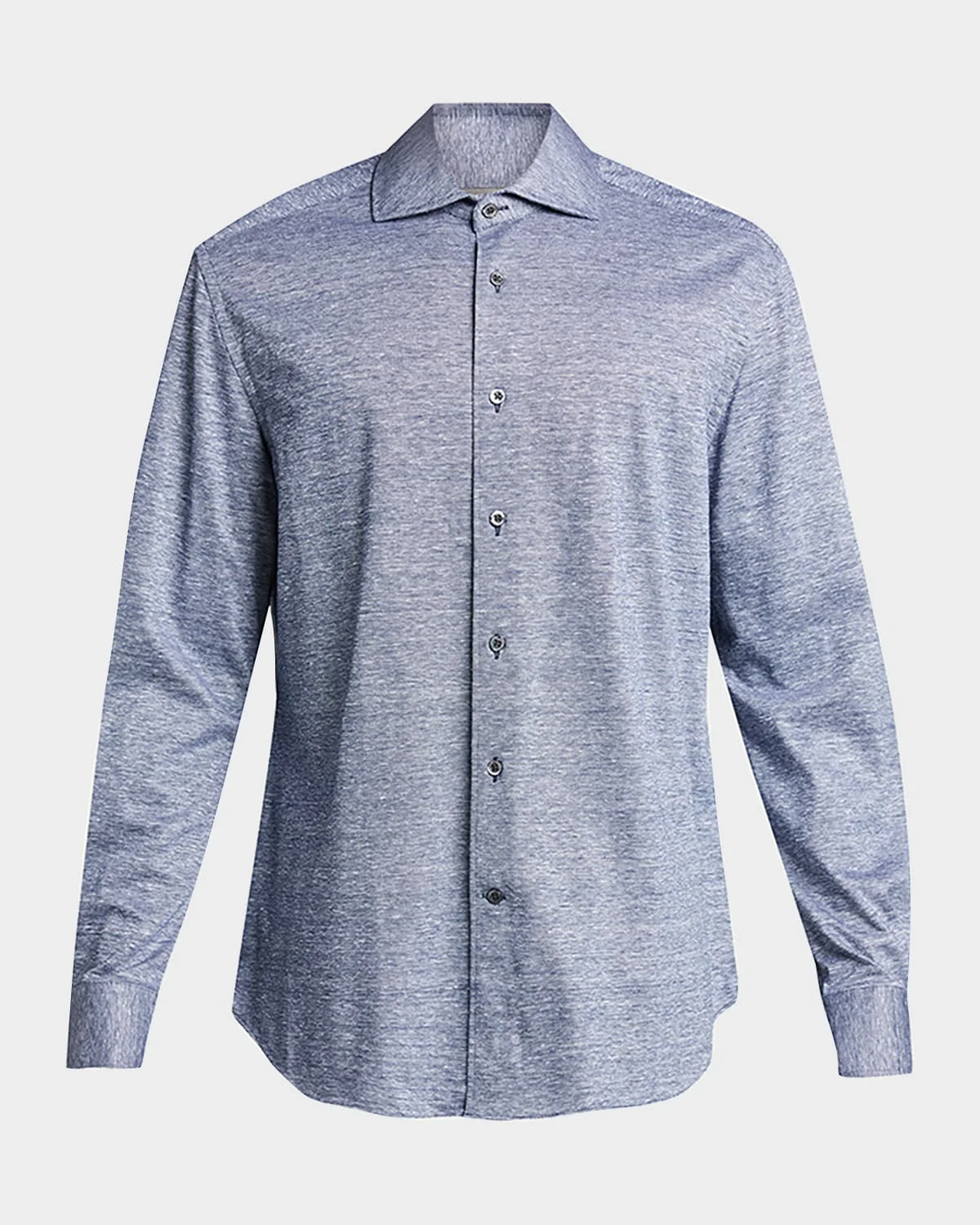 Corneliani melange sport shirt Spread collar; button placket Long sleeves Twobutton cuffs Curved hem Linen/cotton Made in Italy