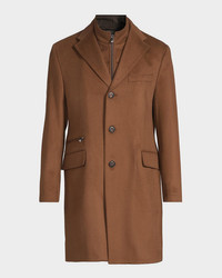 Men's Virgin Wool Single-Breasted Top Coat with Zip Insert