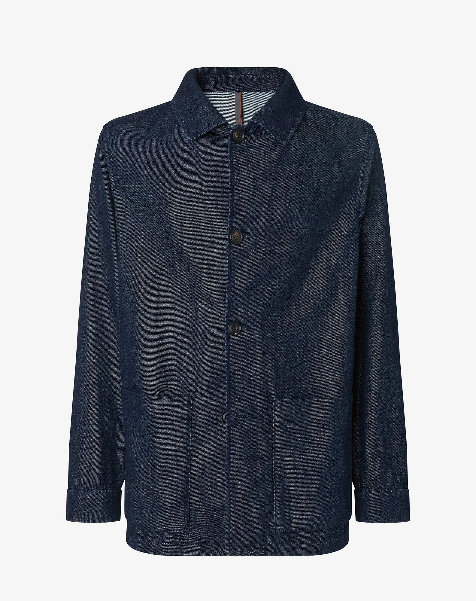 With a casual character, this navy blue cotton denim and lyocell jacket reinterprets the summer outerwear with a relaxed yet smart attitude. The unlined construction with drop 7 and regular fit make this a light garment, while the four-button fastening and shirt collar wink at the world of overshirts. The side patch pockets and shirt cuffs complete a practical and essential design, with a length of 74 cm, ideal for suit separates and seasonal layering. DETAILS AND MATERIALS - 50% linen, 50% lyocell - single breasted 4-button denim jacket - unlined - drop 7 - regular fit - shirt collar - appliqued side pockets - shirt cuffs - length 74 cm FIT & WASHING - This garment has a regular fit. Dry clean with perchloroethylene, do not bleach, do not tumble dry, maximum iron temperature 110°