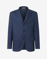 Lightness, excellent breathability and comfort of the fabrics, particularly linen, are the key features of this unlined navy blue jacket. A sophisticated garment that suits our ever flexible lifestyles, from leisure to business occasions. DETAILS & MATERIALS - 66% linen, 26% viscose, 8% polyester - single-breasted 4-button linen jersey jacket - unlined - comfort fit - non-ironed lapels - appliqued outbreast pocket - appliqued patch side pockets - back length 74 cm FIT & WASHING - The model is wearing a size 50 (IT). Model measurements: height 187cm, chest 98cm, waist 82cm, hips 98cm. Dry clean with perchloroethylene, do not bleach, maximum iron temperature 110°, do not tumble dry