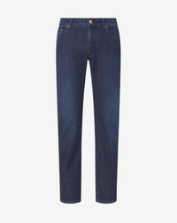 The navy blue Men's stretch cotton five-pocket trousers have a classic fit and carefully designed details that personalize the garment, such as the crest embroidery on the watch pocket. Designed as a versatile garment, the 5-pocket trousers naturally adap DETAILS & MATERIALS - 98% cotton, 2% elastane - 5-pocket stretch denim jeans cut trousers - washed 7.5-once denim - regular fit - Corneliani crest embroidery on coin pocket - zip fly - rear patch - bottom width cm 18 FIT & WASHING - This garment has a classic fit. The model is wearing a size 34 (IT). Model measurements: height 187cm, chest 98cm, waist 82cm, hips 98cm. Dry clean with perchloroethylene, do not bleach, maximum iron temperature 110A°, do not tumble dry