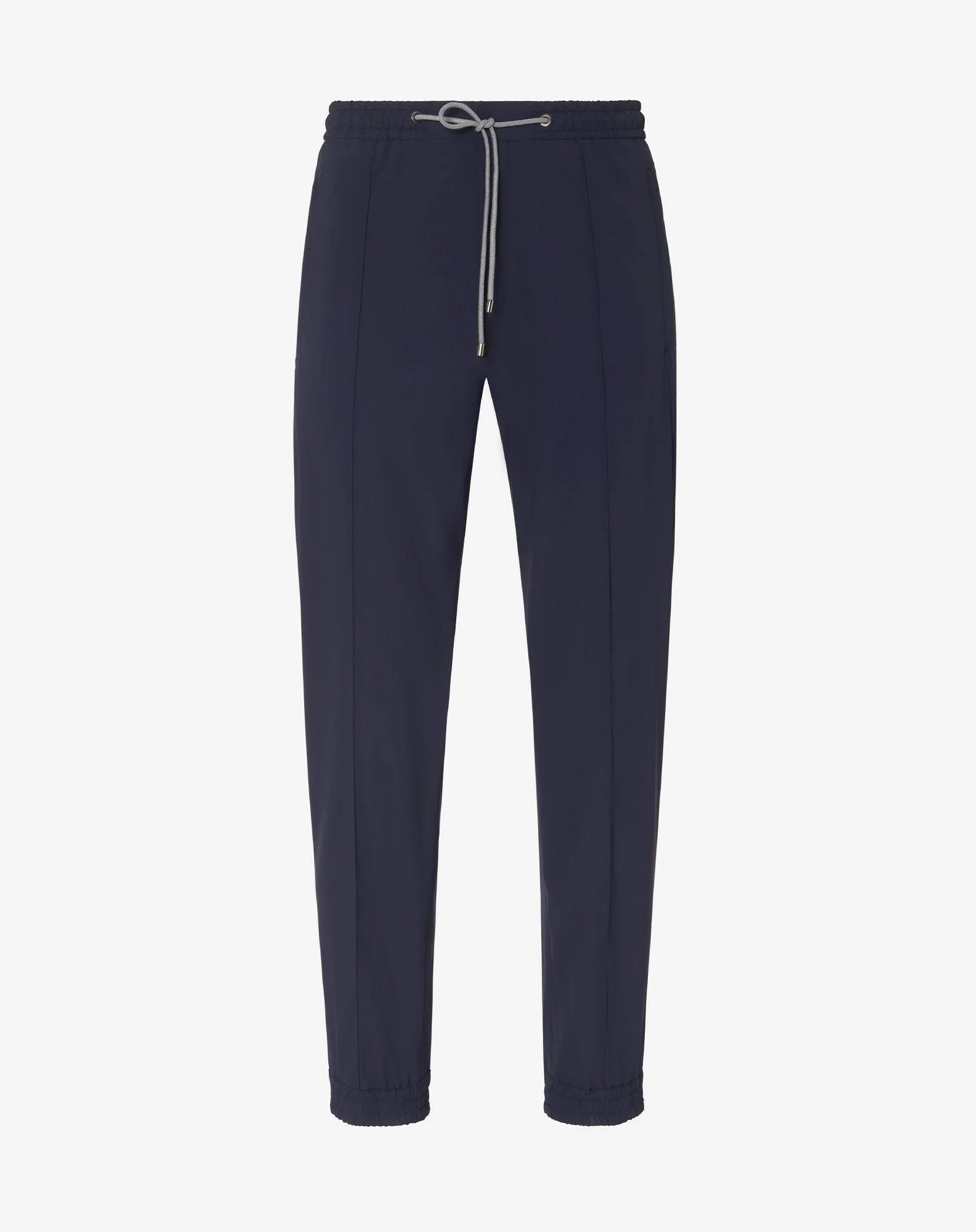 The TECHWOOL project: an advanced technical fabric featuring a pleasant structure that is extremely flexible and compact, with excellent anti-crease and rainproof properties. The modern and functional look transfers the typical qualities of sportswear to a sophisticated and dynamic style that caters for different scenarios, from the urban context to the great outdoors. Ideal for free time, these dark blue joggers boast a sporty contemporary fit that provide the right balance between style and utility. DETAILS & MATERIALS - 66% wool, 30% polyamide, 4% elastane - water repellent stretch tropical wool joggers - drawstring at the waist - regular fit - two vertical welt pockets with zip - one zipped back pocket - inner elastic and border at the trousers’ hem FIT & WASHING - This garment has a classic fit. The model is wearing a size 50 (IT). Model measurements: height 187cm, chest 98cm, waist 82cm, hips 98cm. Dry clean with perchloroethylene, do not bleach, maximum iron temperature 110°, do not tumble dry